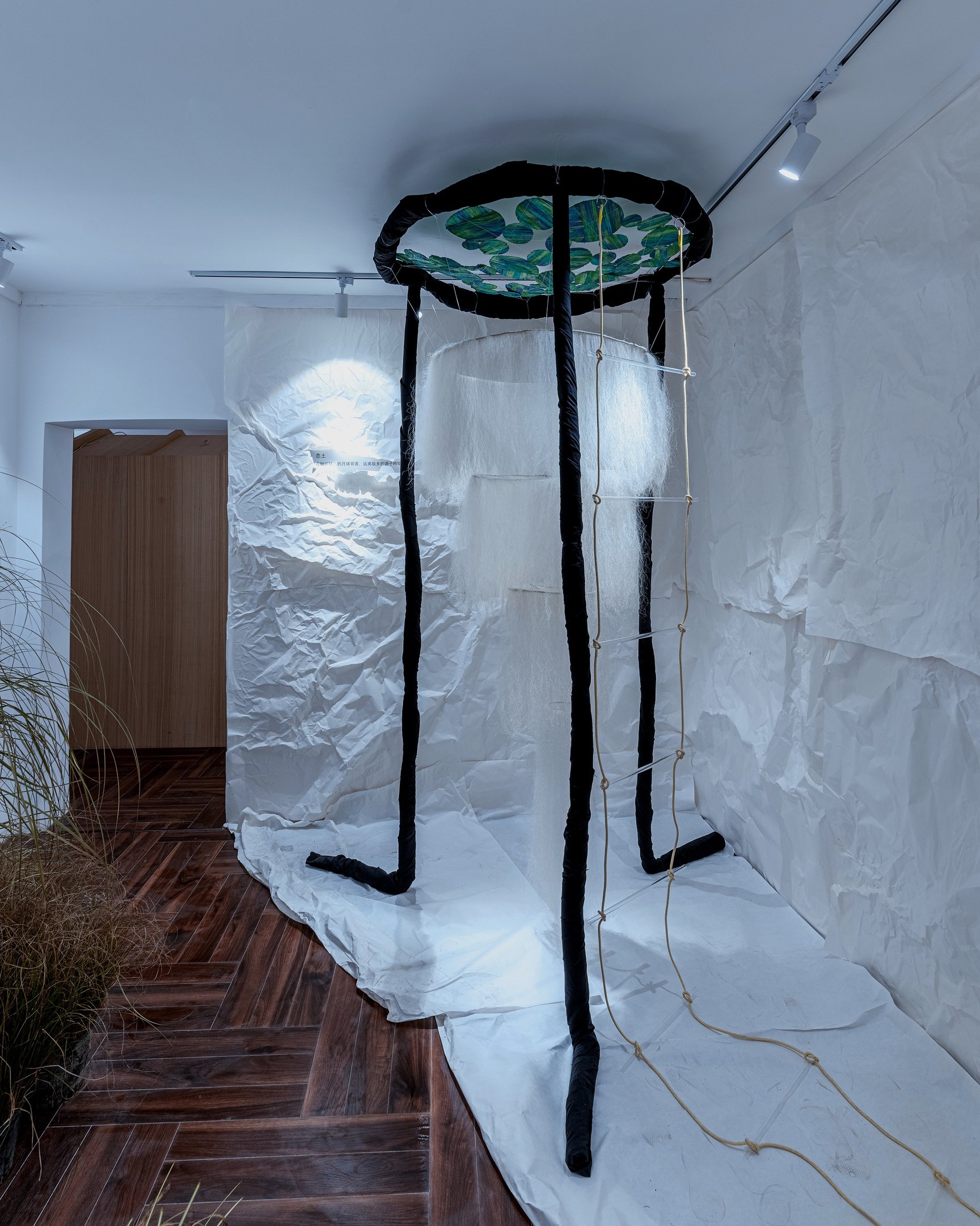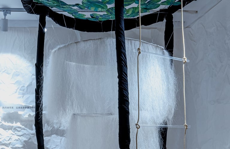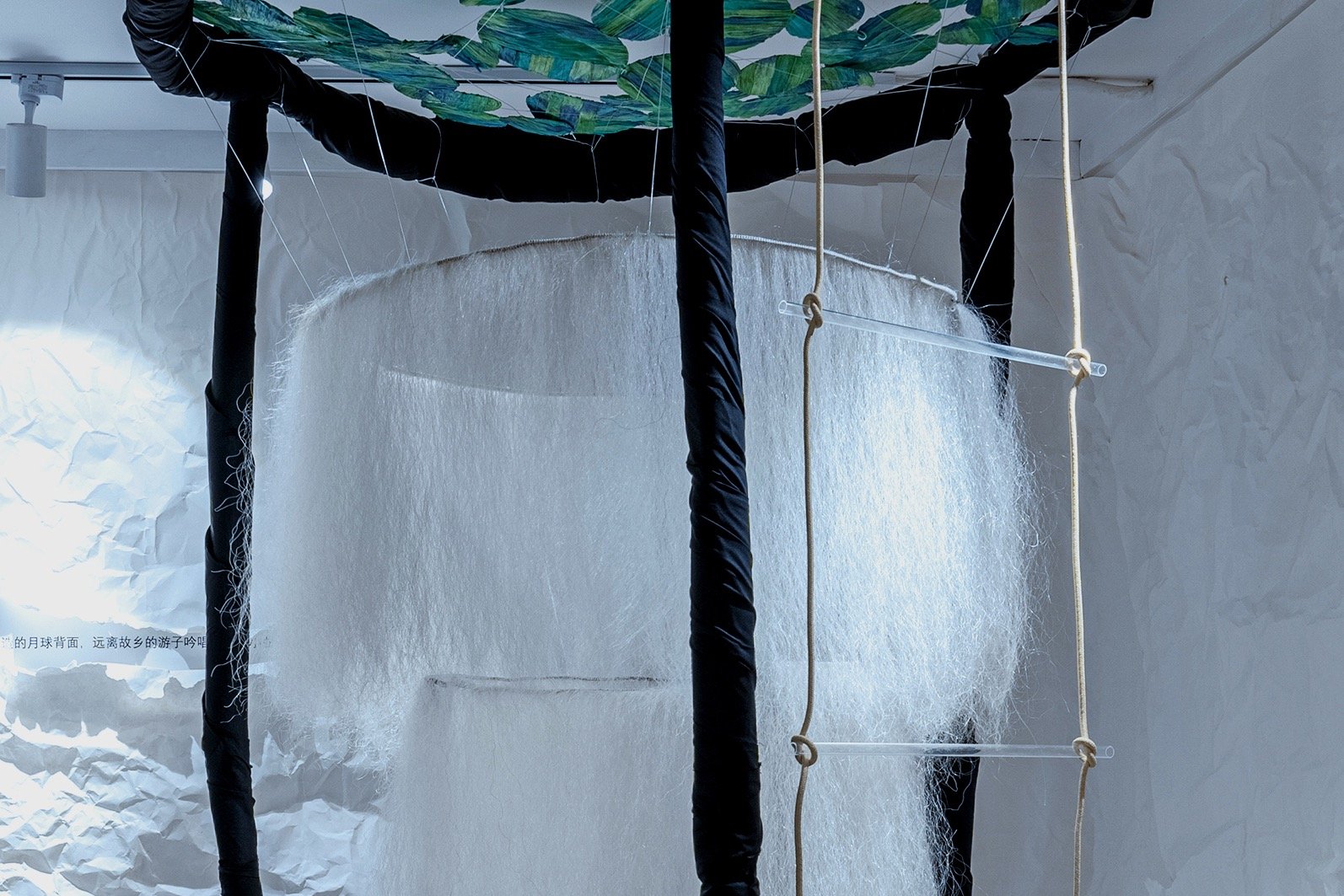 I particularly appreciate indirect light, such as moonlight. In Chinese culture, the full moon symbolizes a family reunion. One evening in 2022, as I strolled along Diagonal Avenue, the sight of the full moon evoked a surge of emotions, as I had been separated from my family for three years due to the pandemic. Later, I told my thesis tutor I wanted to abandon everything in Spain because my efforts seemed like nonsense in front of immense difficulties. The struggle is similar to the two Chinese idioms "fishing for the moon in the water" and "drawing water with a bamboo basket," which signify something nearly impossible to obtain. She mentioned a similar Catalan saying, "La luna en un cove." Coincidentally, during my search for fiber materials, Miquel, the owner of "All You Knit is Love" in Barcelona, assisted me. He took me to Sant Feliu de Pallerols in Catalonia, where I saw the "Pesca Llunes" sculpture. I was touched by how two cultures arrived at a similar concept independently.