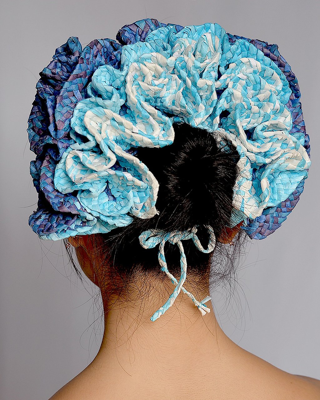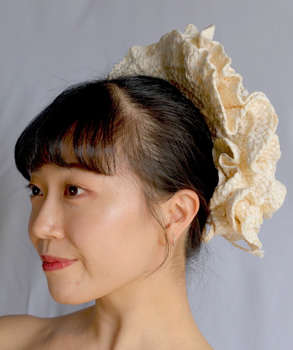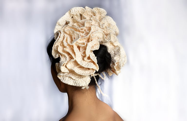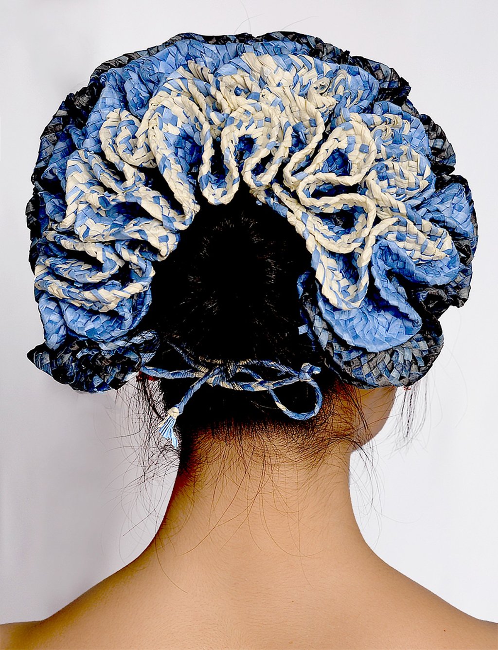 It is handwoven from sustainable paper raffia and crafted in Barcelona, inspired by the rich mushroom landscapes of Catalonia and by my hometown, Guizhou, China. Born from the weaving traditions of the Mediterranean and Iberian Peninsulas, it blends structure and softness the way mushrooms mix magic and mystery. It is soft, flexible, and almost weightless. You might forget you are wearing it until someone asks where you found it.