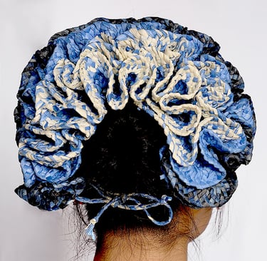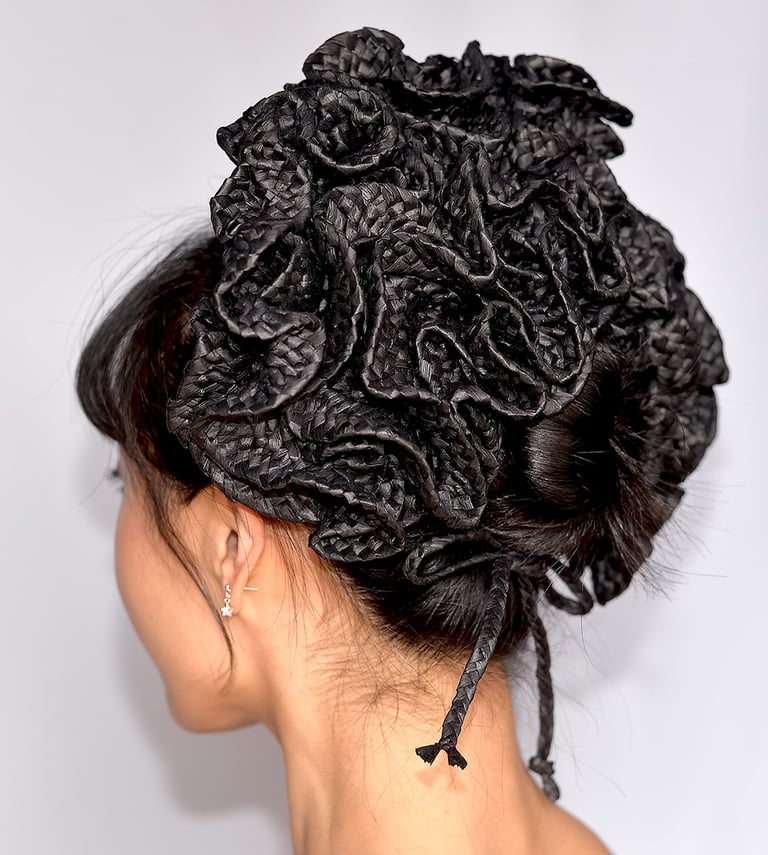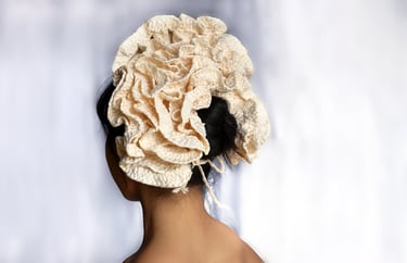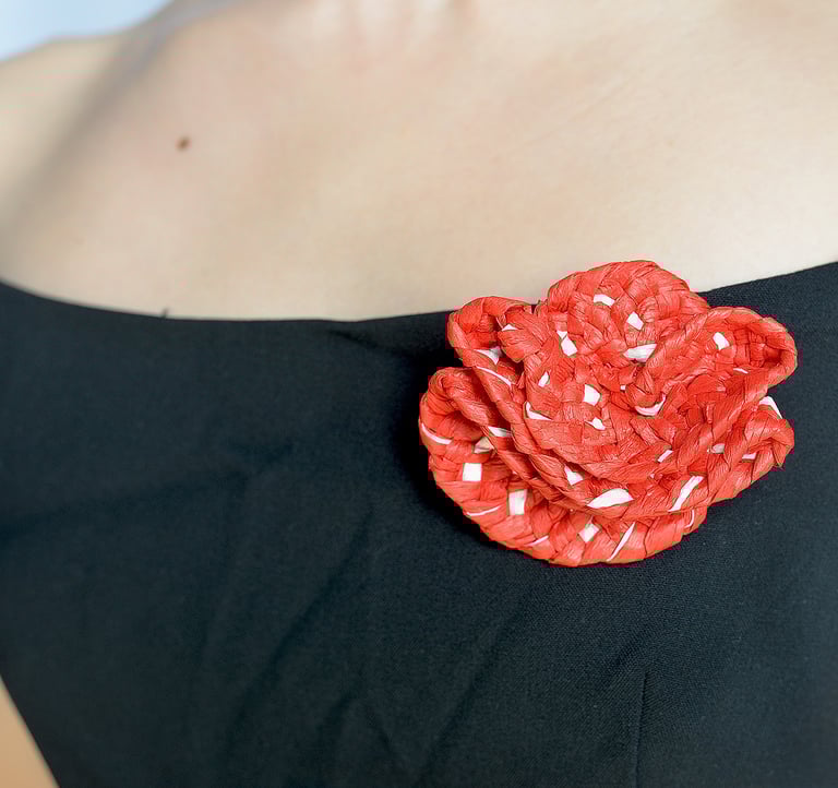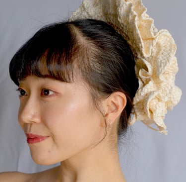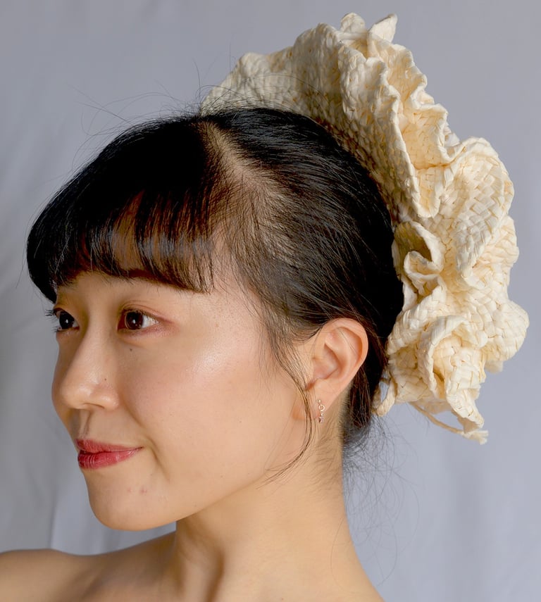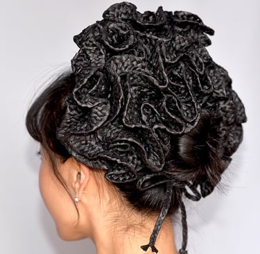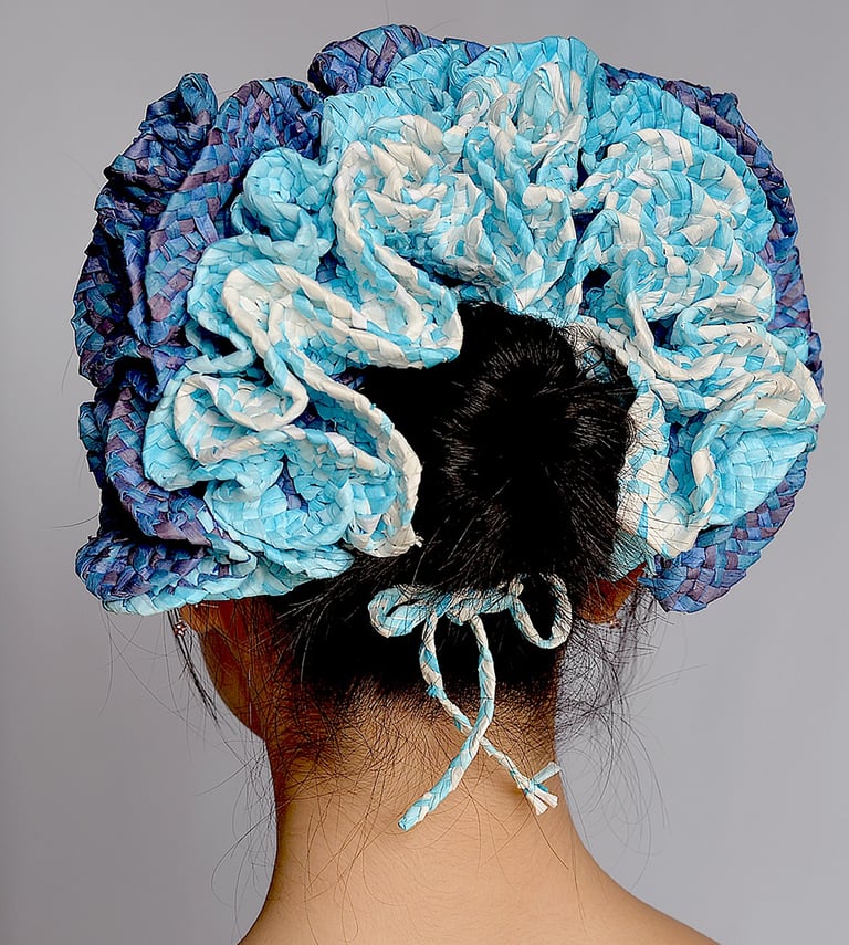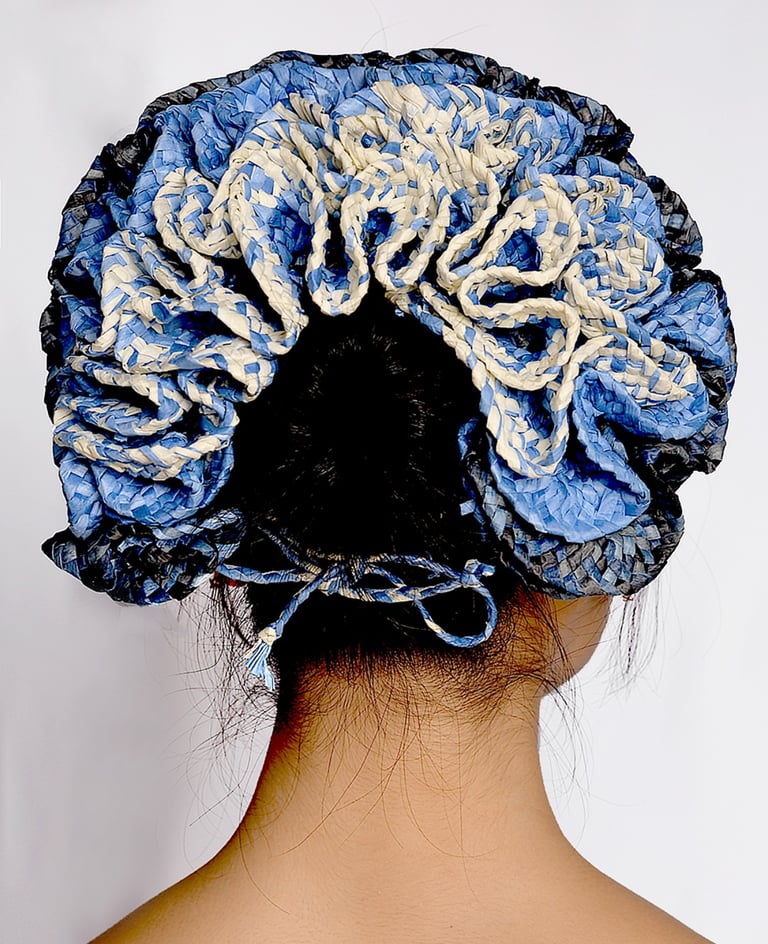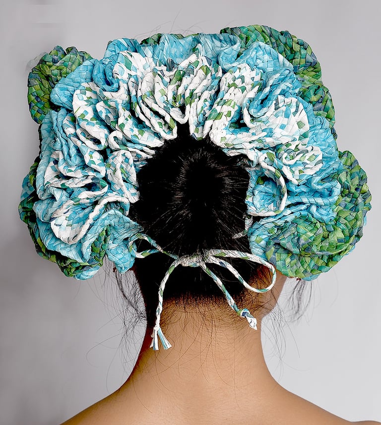 It is handwoven from sustainable paper raffia and crafted in Barcelona, inspired by the rich mushroom landscapes of Catalonia and by my hometown, Guizhou, China. Born from the weaving traditions of the Mediterranean and Iberian Peninsulas, it blends structure and softness the way mushrooms mix magic and mystery. It is soft, flexible, and almost weightless. You might forget you are wearing it until someone asks where you found it.